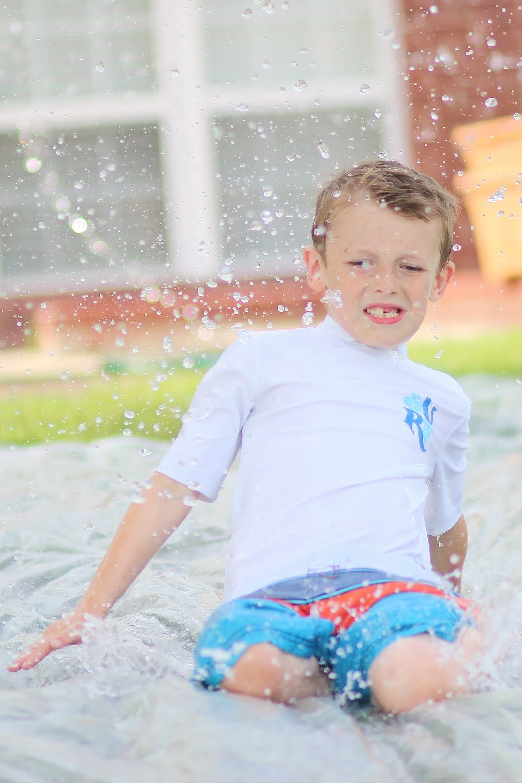 After naps, we did our traditional slip-n-slide. This was a big hit. We missed Papa playing with us this year, but us Moms handled it. The kids had a blast.