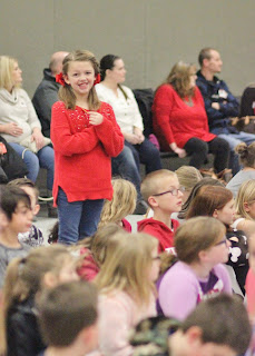 Next, we went to Bailey's class. She was busy handing out her valentines when we arrived. This year all the kids brought the same valentines to their friends. We made slap bracelet valentines, they said "You make me 'SLAPPY' valentine" and included slap bracelets with different patterns. The kids loved these and their friends really loved them too.