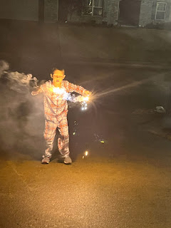 Then we went outside to shoot off our fireworks. This is always a new year's eve favorite for the kids. This year it was pretty cold and it had rained so it was wet, but this didn't stop us.