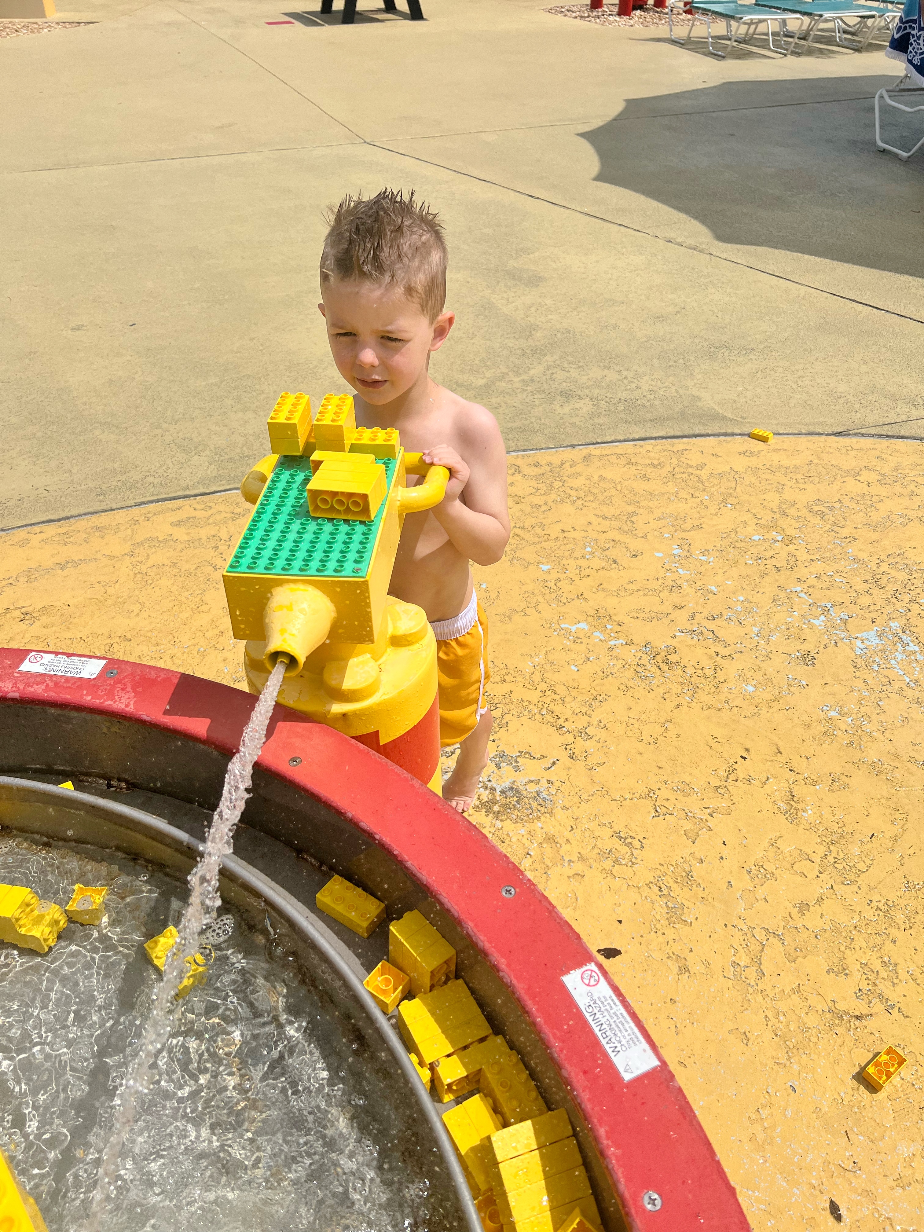 Once we took our pictures, we changed into our swimsuits and then went to play in the waterpark at Legoland. The waterpark was so fun. We only had about 3 hours to play, but that was perfect. It was hot and humid and the water was just what we needed.