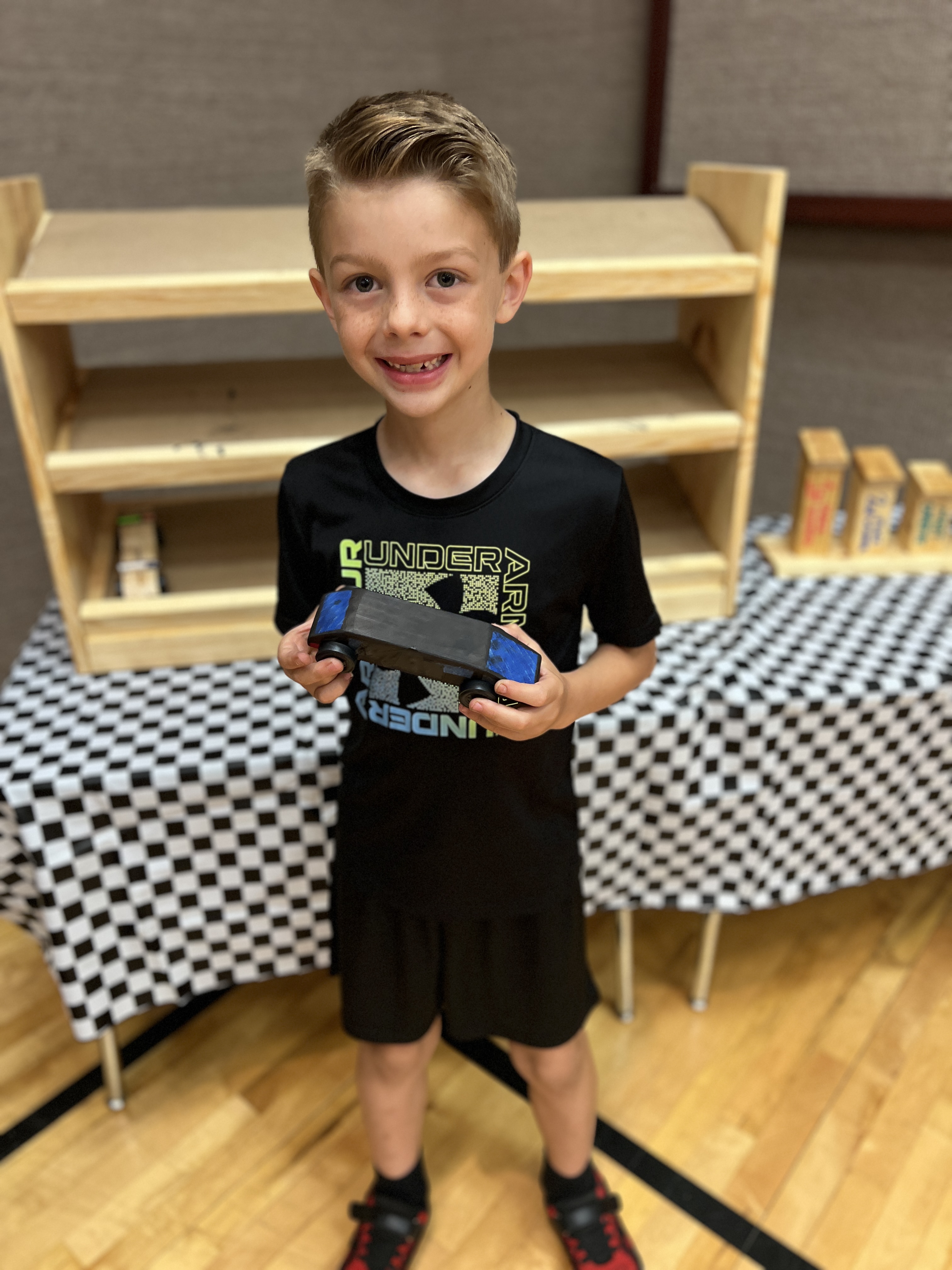The following Wednesday night, the activity day leaders hosted a pinewood derby for all the boys ages 7-11 and it was hilarious. Both Tucker and Benson did really well. Benson came in 4th, just barely being edged out for third. His car was named "the limo" and it looked just like a limo. Tucker got second place. Tucker named his car "Samantha with two S's" and apparently it was some kind of inside joke with the boys from the campout and at one point, all the kids were chanting "SSSamantha" over and over again. It was so funny. They had a great time at the race and they were so thrilled when Tucker got a trophy for 2nd place.
